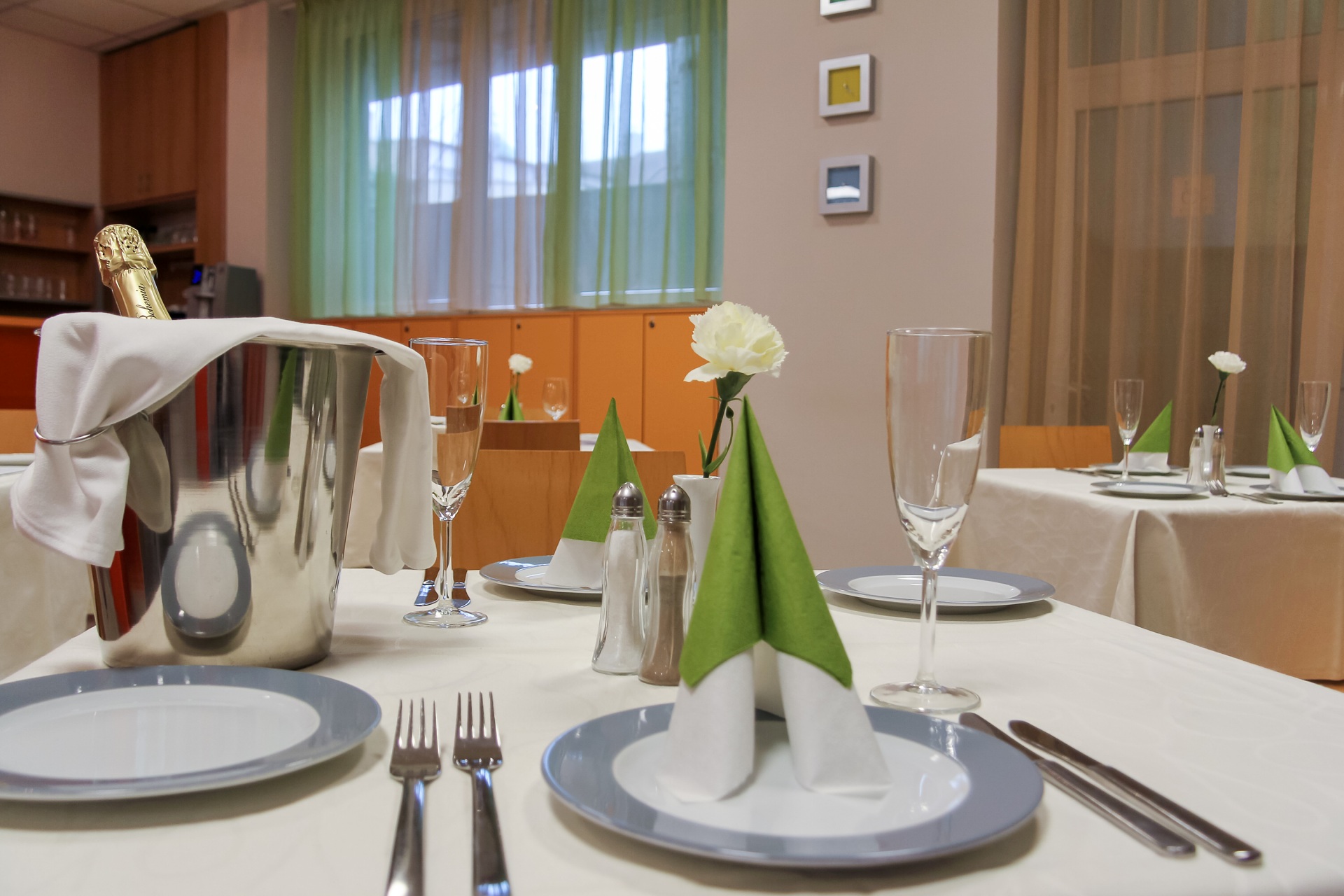 Die Gäste werden im Restaurant des Schulhotels verpflegt und von den Schülern der Hotelfachschule bedient. Die Hotelküche bietet Frühstück, Halbpension oder Vollpension, aber man kann bei uns auch verschiedene Coffeebreaks oder Lunchpakete bestellen. Es ist auch möglich, Speisen der internationalen Küche oder vegetarische Kost zu kochen.